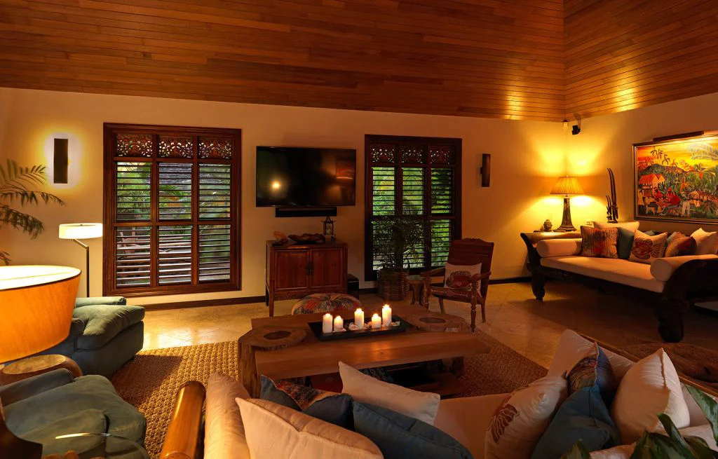 The villa is outfitted with cable television in the great room and all bedrooms, complimentary wireless internet access and a Sonos music system that filters soothing sounds throughout the house and grounds.
